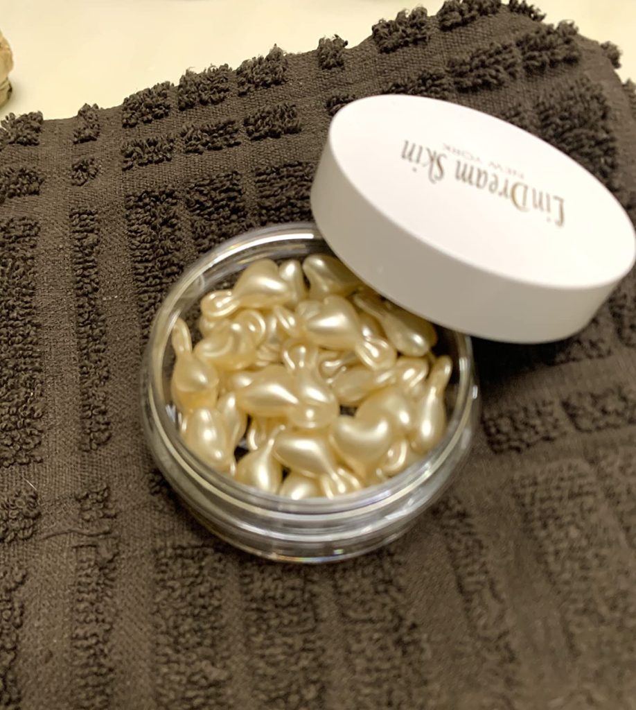 It’s good for the skin. Feels like silk, makes the skin so soft. Using it now for some days always in the evenings, it’s nourishing the skin really nicely, no need to put a moisturizer on. I also like the smell and the heart shaped capsules.